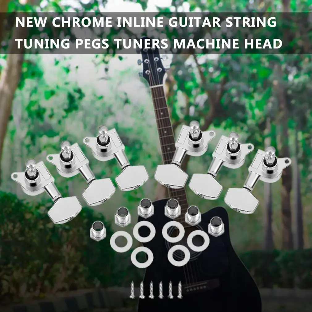 6pcs New Chrome Inline Guitar String Tuning Pegs Tuners Machine Head Professional Durable Head For Acoustic Electric Guitars